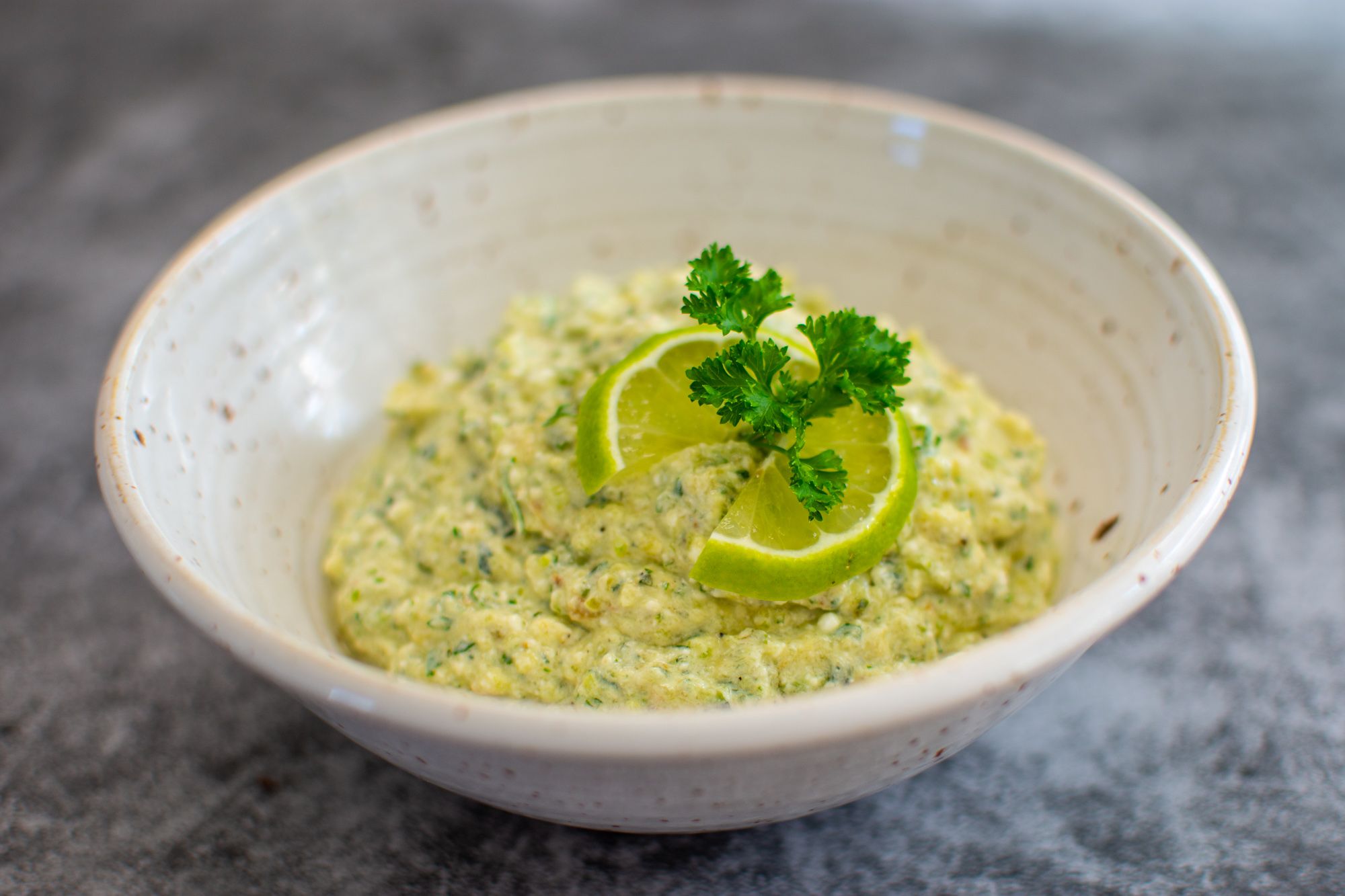 Tillsätt fetaost, persilja, vitlöken skuren i bitar, limesaft.